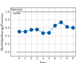 >>> # Example plotting multiple values >>> import torch >>> from torchmetrics.classification import MultilabelAveragePrecision >>> metric = MultilabelAveragePrecision(num_labels=3) >>> values = [ ] >>> for _ in range(10): ... values.append(metric(torch.rand(20,3), torch.randint(2, (20,3)))) >>> fig_, ax_ = metric.plot(values)