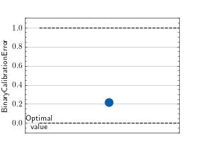 >>> from torch import rand, randint >>> # Example plotting a single value >>> from torchmetrics.classification import BinaryCalibrationError >>> metric = BinaryCalibrationError(n_bins=2, norm='l1') >>> metric.update(rand(10), randint(2,(10,))) >>> fig_, ax_ = metric.plot()