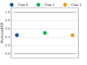 >>> # Example plotting a single >>> import torch >>> from torchmetrics.classification import MulticlassEER >>> metric = MulticlassEER(num_classes=3) >>> metric.update(torch.randn(20, 3), torch.randint(3,(20,))) >>> fig_, ax_ = metric.plot()