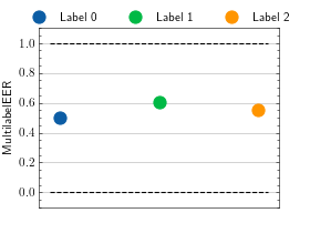 >>> # Example plotting a single >>> import torch >>> from torchmetrics.classification import MultilabelEER >>> metric = MultilabelEER(num_labels=3) >>> metric.update(torch.rand(20,3), torch.randint(2, (20,3))) >>> fig_, ax_ = metric.plot()