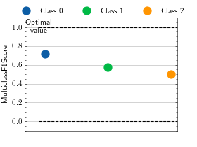 >>> from torch import randint >>> # Example plotting a single value per class >>> from torchmetrics.classification import MulticlassF1Score >>> metric = MulticlassF1Score(num_classes=3, average=None) >>> metric.update(randint(3, (20,)), randint(3, (20,))) >>> fig_, ax_ = metric.plot()