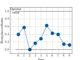 >>> # Example plotting multiple values >>> from torch import rand, randint >>> from torchmetrics.classification import BinaryJaccardIndex >>> metric = BinaryJaccardIndex() >>> values = [ ] >>> for _ in range(10): ... values.append(metric(rand(10), randint(2,(10,)))) >>> fig_, ax_ = metric.plot(values)