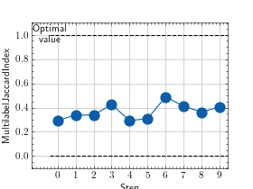 >>> # Example plotting multiple values >>> from torch import rand, randint >>> from torchmetrics.classification import MultilabelJaccardIndex >>> metric = MultilabelJaccardIndex(num_labels=3) >>> values = [ ] >>> for _ in range(10): ... values.append(metric(randint(2, (20, 3)), randint(2, (20, 3)))) >>> fig_, ax_ = metric.plot(values)