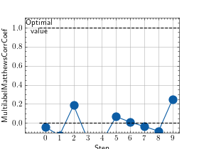 >>> from torch import rand, randint >>> # Example plotting multiple values >>> from torchmetrics.classification import MultilabelMatthewsCorrCoef >>> metric = MultilabelMatthewsCorrCoef(num_labels=3) >>> values = [ ] >>> for _ in range(10): ... values.append(metric(randint(2, (20, 3)), randint(2, (20, 3)))) >>> fig_, ax_ = metric.plot(values)
