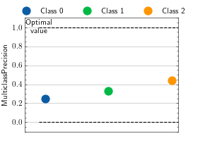>>> from torch import randint >>> # Example plotting a single value per class >>> from torchmetrics.classification import MulticlassPrecision >>> metric = MulticlassPrecision(num_classes=3, average=None) >>> metric.update(randint(3, (20,)), randint(3, (20,))) >>> fig_, ax_ = metric.plot()