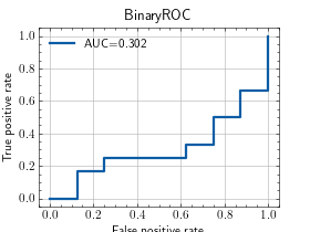 >>> from torch import rand, randint >>> from torchmetrics.classification import BinaryROC >>> preds = rand(20) >>> target = randint(2, (20,)) >>> metric = BinaryROC() >>> metric.update(preds, target) >>> fig_, ax_ = metric.plot(score=True)