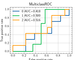 >>> from torch import randn, randint >>> from torchmetrics.classification import MulticlassROC >>> preds = randn(20, 3).softmax(dim=-1) >>> target = randint(3, (20,)) >>> metric = MulticlassROC(num_classes=3) >>> metric.update(preds, target) >>> fig_, ax_ = metric.plot(score=True)