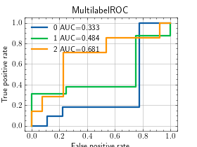 >>> from torch import rand, randint >>> from torchmetrics.classification import MultilabelROC >>> preds = rand(20, 3) >>> target = randint(2, (20,3)) >>> metric = MultilabelROC(num_labels=3) >>> metric.update(preds, target) >>> fig_, ax_ = metric.plot(score=True)