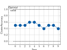 >>> # Example plotting multiple values >>> import torch >>> from torchmetrics.clustering import ClusterAccuracy >>> metric = ClusterAccuracy(num_classes=4) >>> values = [ ] >>> for _ in range(10): ... values.append(metric(torch.randint(0, 4, (10,)), torch.randint(0, 4, (10,)))) >>> fig_, ax_ = metric.plot(values)