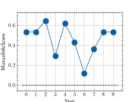 >>> # Example plotting multiple values >>> import torch >>> from torchmetrics.clustering import MutualInfoScore >>> metric = MutualInfoScore() >>> values = [ ] >>> for _ in range(10): ... values.append(metric(torch.randint(0, 4, (10,)), torch.randint(0, 4, (10,)))) >>> fig_, ax_ = metric.plot(values)