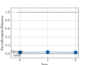 \[KID = MMD(f_{real}, f_{fake})^2\]where \(MMD\) is the maximum mean discrepancy and \(I_{real}, I_{fake}\) are extracted features from real and fake images, see kid ref1 for more details. In particular, calculating the MMD requires the evaluation of a polynomial kernel function \(k\)