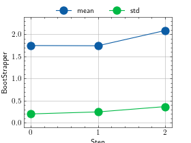 >>> # Example plotting multiple values >>> import torch >>> from torchmetrics.wrappers import BootStrapper >>> from torchmetrics.regression import MeanSquaredError >>> metric = BootStrapper(MeanSquaredError(), num_bootstraps=20) >>> values = [ ] >>> for _ in range(3): ... values.append(metric(torch.randn(100,), torch.randn(100,))) >>> fig_, ax_ = metric.plot(values)